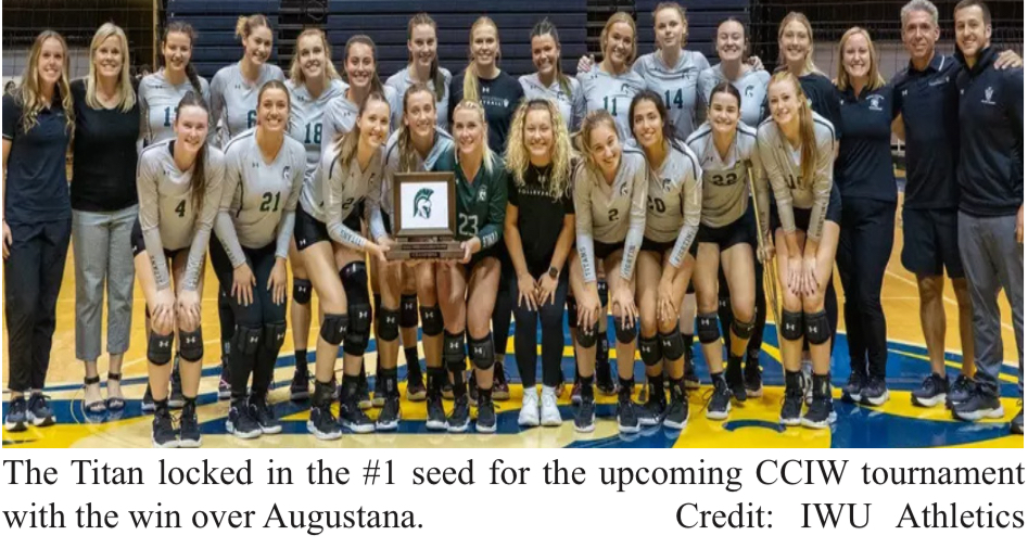 The Illinois Wesleyan University women’s volleyball team secured a five-set victory against Augustana College on Wednesday, Oct. 23, 2024, clinching at least a share of the College Conference of Illinois and Wisconsin (CCIW) Regular Season Championship. This marks the Titans’ sixth CCIW title,their first since 2021. The win also guarantees Illinois Wesleyan the No. 1 seed and hosting rights for the upcoming conference tournament.