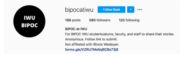 The IWU BIPOC Instagram account started last September with the intention of giving “BIPOC students / alumni / faculty / staff the opportunity to share stories anonymously,” as explained in their first post. The first several posts reflect this, and the Instagram account has continued to shine a light on the unfair treatment of students, faculty and staff of color at IWU. Multiple anonymous posts call out specific professors and administrators, and a recent post directly addresses Saga for its “horrific imitation of black culture.” These particular posts are not necessarily calls to action but do draw attention to specific incidents and people who are making this campus a more dangerous place for students of color. Though there has not been direct violence from these individuals, this perpetuates an environment where even the smallest microaggressions can be tolerated by the university and its administrators without any corrections or consequences.