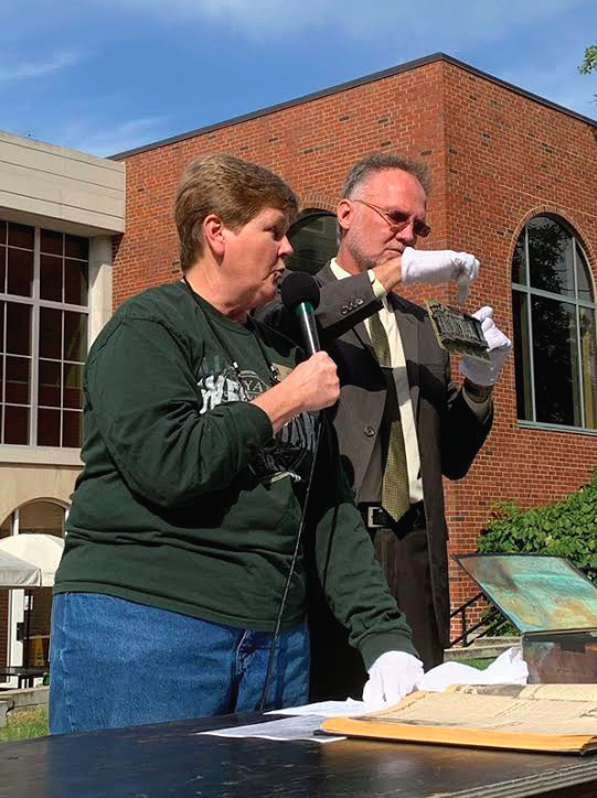 The capsule’s contents were unveiled for viewers in front of the Memorial Center steps, and Meg Miner, University archivist, was just as surprised as everyone watching.