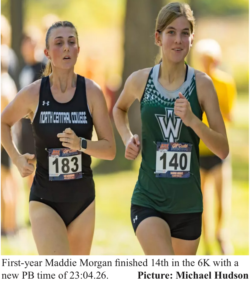 The race began with the women’s six-kilometer. Junior Adrianna Crabtree, the reigning CCIW individual champion, and senior Annalese Chudy started at the front of the pack, securing the fourth and fifth spots, respectively.