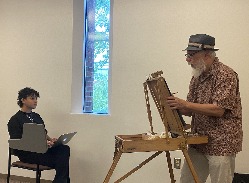 He just surpassed his one-year anniversary as a partial owner in Main Gallery 404 in downtown Bloomington, a gallery that showcases the artwork of local artists. At the gallery he gets to talk to customers over the counter again, something he misses from his days as a bookstore owner.
