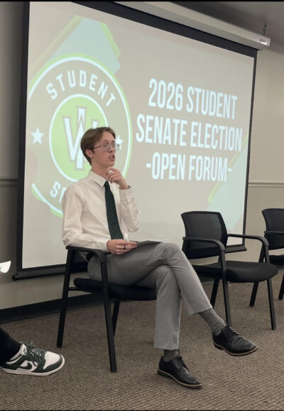 Brady Poisal spoke at the Student Senate election open forum on Oct. 21. Credit: Nozi Davlatyorova
