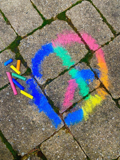 A chalk drawing of a peace sign. Credit: Jake Cowman