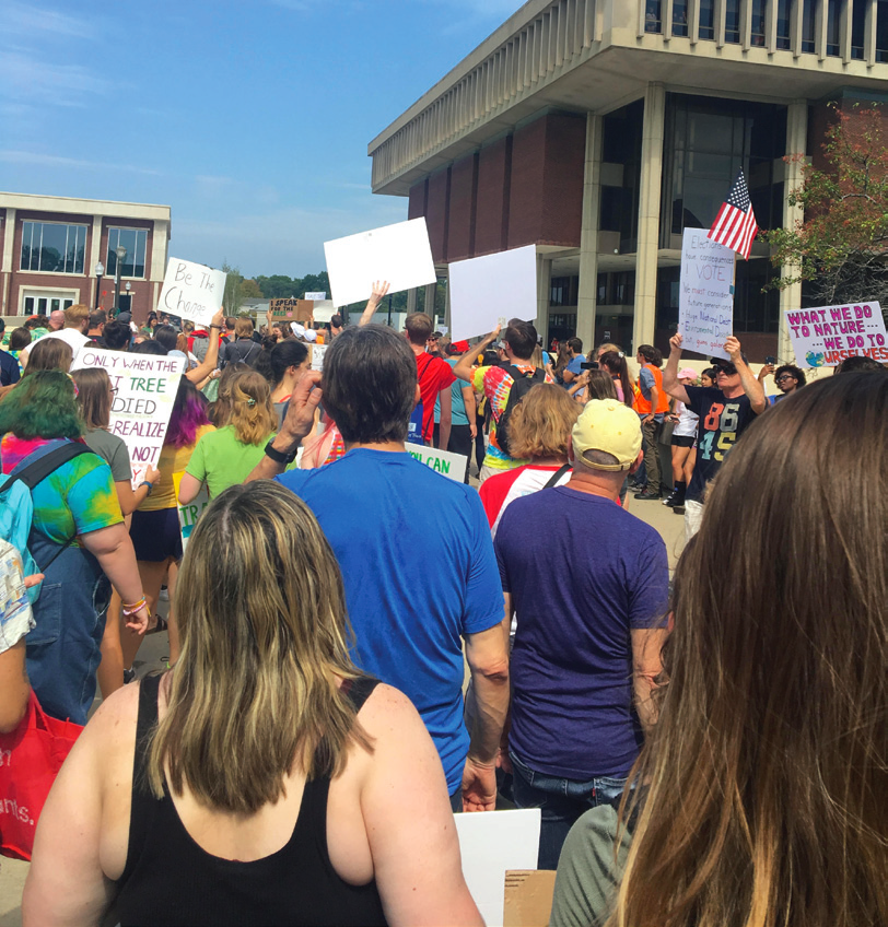 Speakers before the march discussed the Green New Deal, individual actions versus systematic change, mindsets, and voting.