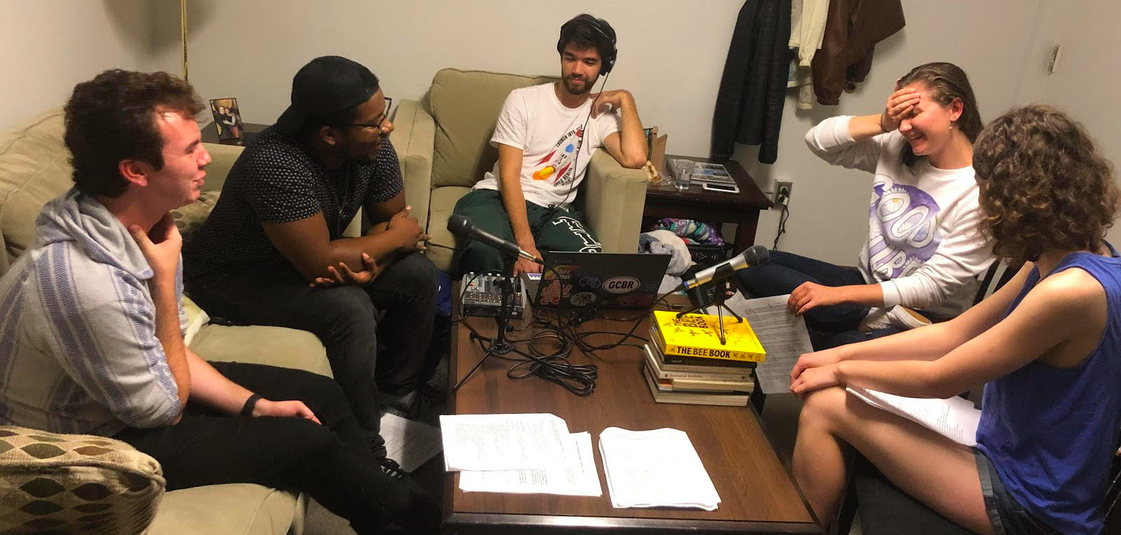 We stack microphones on a pile of books in someone’s dorm room, perch ourselves in uncomfortable chairs like vultures over a carcass and hope for the best as our incoherent ramblings begin.