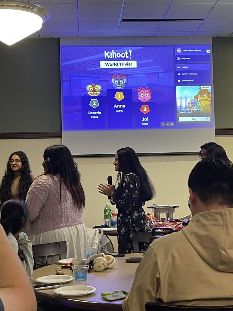 On Nov. 8, 2025, the Global Fest Trivia & Tunes event was held in the Turfler room at the memorial center, organized by ISO. Various types of food and beverages from different countries were presented for tasting. There was a Kahoot trivia game for knowledge about other countries, and the winner received a box of international snacks. Photos: Nozi Davlatyorova
