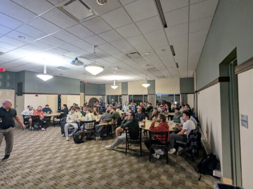 What do you do on a daily basis to avoid being sexually assaulted?” Sgt. Kiel Nowers of Bloomington Police Department asked to open his presentation on Nov. 4, 2025. He was speaking to a group of 75 men from Illinois Wesleyan University’s fraternity community in the Memorial Center’s Turfler Room.