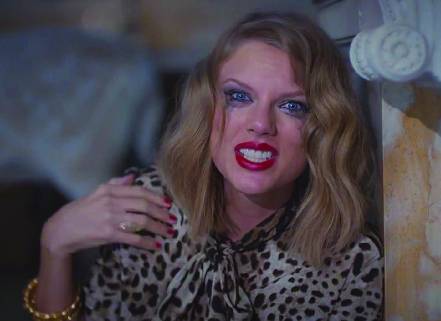 Then, the scene cuts to a hysteric Swift, face covered in mascara as she grieves the loss of the latest in her line of exes. She then proceeds to trash everything he owns—his portrait in the hallway, his phone, his clothes and, of course, his expensive whip.